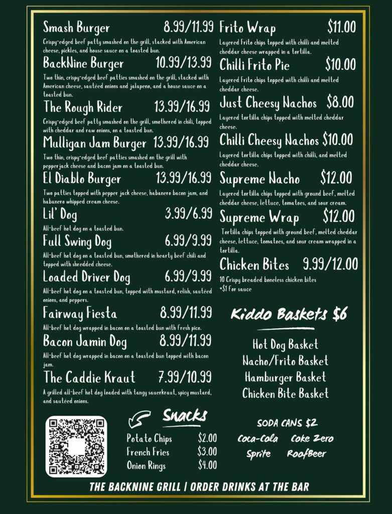 Grab a seat, order your favorites, and enjoy a relaxed meal with a course-side view. Whether you’re finishing your round or just stopping by, we’re serving up something for everyone.